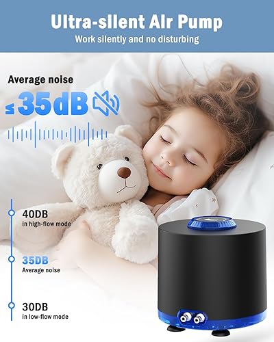 NOISE REDUCTION ULTRA QUIET FUNCTION - The aquarium air pump features a sturdy double-layer structure with a built-in air pump and thickened casing, the bottom of the pump is designed with four soft rubber pads, which not only reduce noise, the max noise does not exceed 35dB but also prevent the pump from moving excessively during operation.