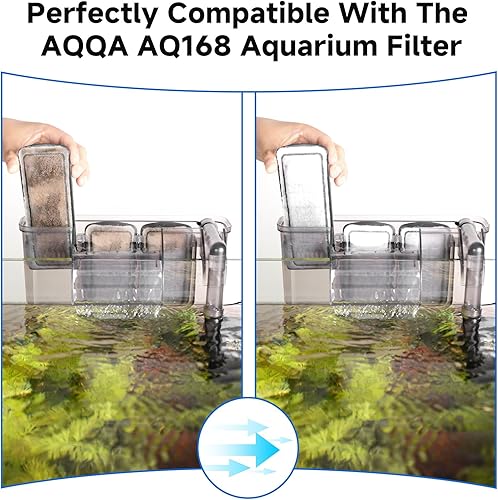 PLUG-AND-PLAY - The AQQA aquarium filter is designed for ultimate ease of use. Unlike many traditional filters that require water to be added before starting, our fish tank filter can be powered on directly—no need to fill with water! Simply plug it in, and the filter will start working immediately, making setup quick and hassle-free. Suitable for fish tank with a thickness of up to 1.2 inches (28mm). (Note: When in use, the water pump should be below the water surface)