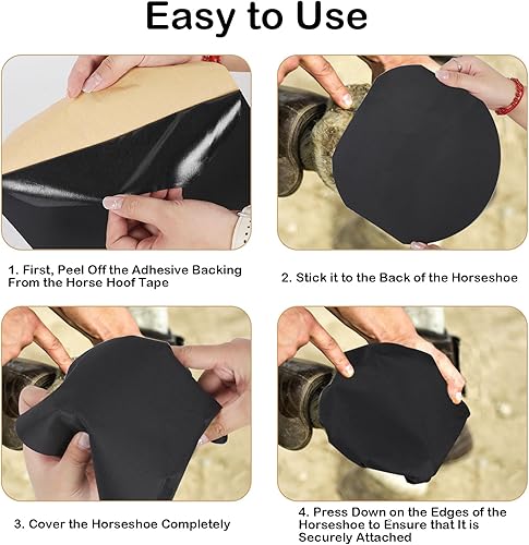 【Horseshoe-Shaped Design】This strong sticky horse hoof wrap is cut to fit the structure of the horseshoe. The adhesive backing securely and easily adheres to the hoof surface, simplifying the hoof care process