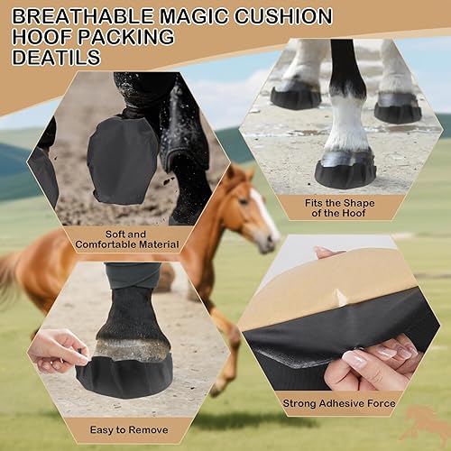 【Easy to Use】The hoof packing for horses is simple and convenient to apply, just peel off the backing, firmly press the edges to secure a snug fit. Works exceptionally well when used with horse boots