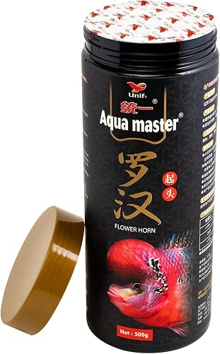 Pellet size: Medium 2.8-3.0mm Adapt to feed Giant blood parrot, red parrot, flower horn, China Ranchu, Lion-head Goldfish, and other senior ornamental fish