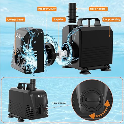 EXTENSIVE APPLICATIONS – The fish tank pump can be used for aquarium, pond, waterfalls, water features, fountains, hydroponics, horticulture, water garden. Suitable for both marine and fresh water.
