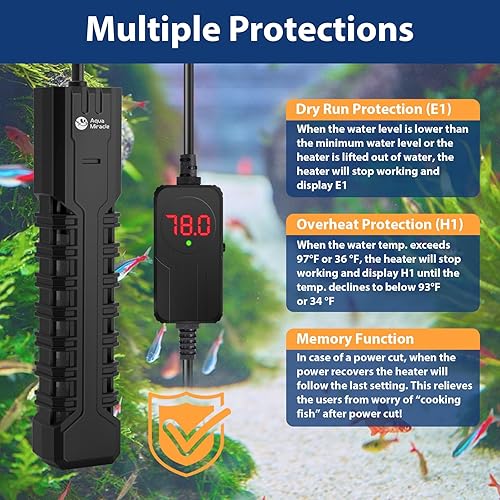 SAFE & RELIABLE DESIGN - Our aquarium water heater features a protective housing that evenly disperses warmth, preventing glass damage and avoiding the risk of burns to your fish from the heater's external heat.