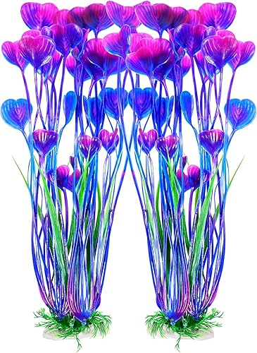 15.5inch tall artificial plants add eye-catching color to your aquarium and brighten your aquarium, suitable for 45 gallon or larger fish tanks