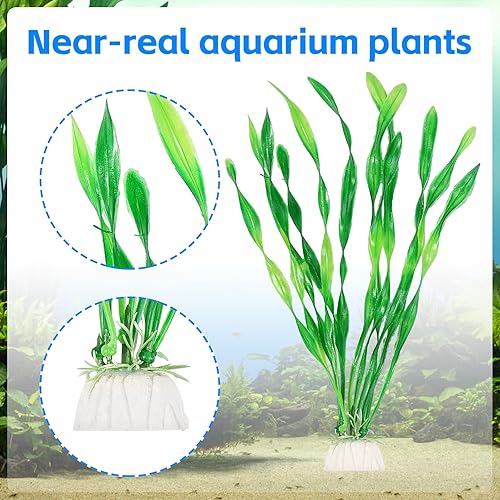 Decorated fish tank with green artificial plants to brighten your aquarium landscape