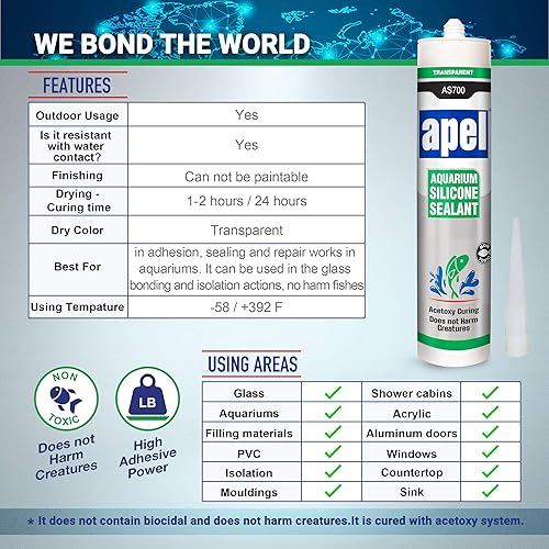 Strong Bond - The fish tank glue for glass is very strong and will remain flexible. Our silicone sealant will form a permanent seal that won’t crack or shrink. When used to bond items to the aquarium, it will hold them in place safely.