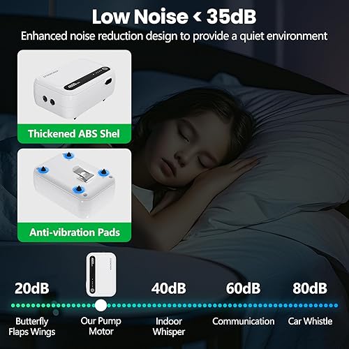 【Ultra-Quiet Design】Our aquarium bubbler employs a new generation of ultra-quiet magnetic motors, eaturing 4 shock-absorbing feet, a durable ABS shell to insulate noise and lower the noise level without sacrificing performance. This creates a serene and peaceful fishing environment for you