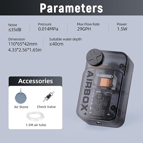Model Options:Choose single/double outlet models. Fish Tank Aerator kits include nano air stones, check valves and silicone tubing. Aquarium Air Pump comes with visual guide enabling 3-minute setup for beginners.
