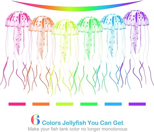 Gorgeous Colors - DaToo offers you 6 pack jellyfish of different colors ( Green, Pink, Blue, Orange, Purple, Yellow). This will make your fish tank color no longer monotonous. Select DaToo Fluorescent Jellyfish as your Aquarium Decor, Let us immediately have a colorful fish tank!!