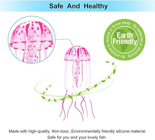 Safe Material For Your Fish and Environment - In life, humans need a safe and healthy environment, and so are fish. Every component of the DaToo Fluorescent Jellyfish is made with high-quality, Non-toxic ,Environmentally friendly silicone material. This means it is safe not only for your fishes, but for you as well. Select DaToo Environmentally friendly Fluorescent Jellyfish, not only take care of your fish is also concerned about your health.