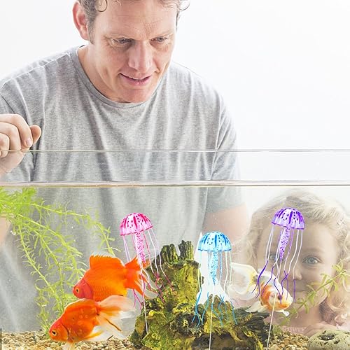 EASY To USE - Just adjust the length of the jellyfish's traction line, and then use a suction cup to fix it in the fish tank, you can get six beautiful floating jellyfish. (Note: This product needs to be used together with the aquarium light to emit fluorescence.)