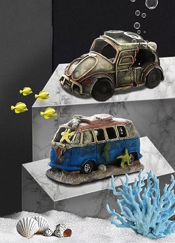 【Decorate Your Fish Tank】 Add some whimsical charm and wonder to your fish tank with the small Bus Wreckage Aquarium Decoration. Change your aquarium and reptile tank into a beautiful scenery.