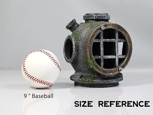 Size: 7.9 * 3.3 * 5.7 inch, suitable for decoration of fish tanks above 5 gallons. The aquarium decor is double-sided. There are 3 holes in the aquarium air bubbler decorations, which can be used for fish passage or spawning rest