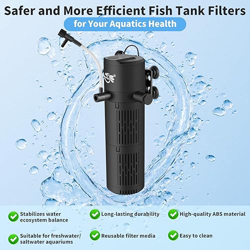 【Ultra Quiet】- Aquarium filter with noise levels below 35dB, this filter provides powerful yet silent water circulation, eliminating disruptive sounds while maintaining optimal aquarium conditions.