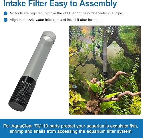 【Compatibility】 Intake Filter Designed for AquaClear 70/110 Models; Size 53mm x 29mm x 29mm, this intake strainer fits seamlessly onto the original for Aquaclear filter intake stem. Its exact dimensions guarantee a snug and secure fit, making installation quick and hassle-free for a perfect upgrade to your aquarium setup.