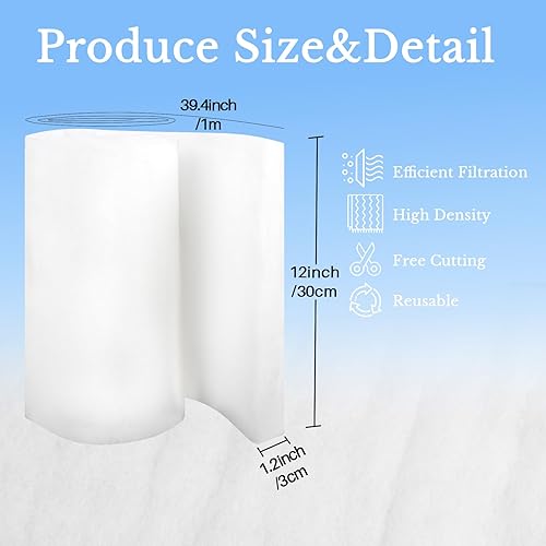 Good Water Permeability: You will receive a 39.4" x 12" white filter pad, our filter floss 1.2 inches thick, with higher density, allowing for smooth water flow without water blockage or water accumulation, good water permeability and stronger filtering effect