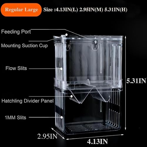 【Space saving design】The breeding box can be fixed on the wall of the aquarium with fish tank,The two-tier design can hold more fish and save space,the grating prevents soiling of the box by food and ordure.