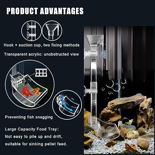 【HEIGHT ADJUSTABLE】 This set of aquarium fish tank feeder can be assembled into 3 different heights: about 6.7 inches, 11 inches and 15 inches. You can easily adjust the height to make it fit different aquarium sizes and create the best feeding conditions for your aquatic pets!