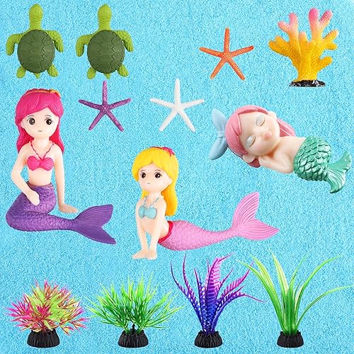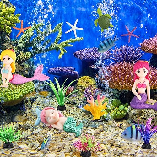 What you will get: the package contains 13 pieces of aquarium decor accessories, including 3 pieces of mermaids in different shapes, 3 pieces of starfish, 1 piece of colorful coral, 2 pieces of sea turtles and 4 pieces of simulated seaweeds, abundant quantity and various style can build a nice landscape