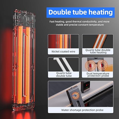 Safe and durable - the aquarium heater is made of quartz tube, glass tube, nickel-chromium heating wire, which is safe, corrosion-resistant and explosion-proof, with better heating performance, safer and longer service life. The outer shell of the heating rod is made of high-temperature resistant ABS material to protect your fish and aquatic life from being scalded.