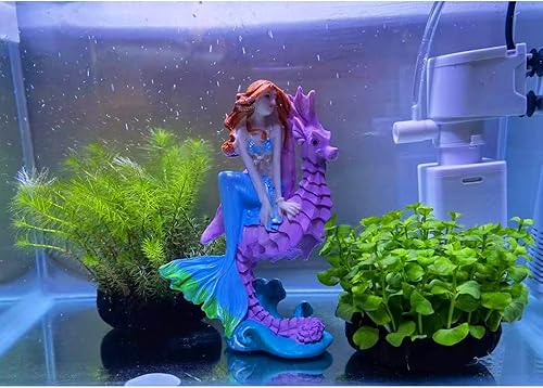 LEGEBDS : Under the tranquil starry sky, the gentle sea breeze blows on this unknown island in the Mediterranean. Our beautiful mermaid princess, quietly sitting on the back of a seahorse, looking deep into the distant sea, is perfect for your home aquarium, turning your aquarium into a beautiful landscape and creating a lifelike world for your aquarium.