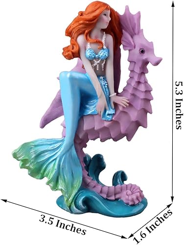 NON-TOXIC RESIN PLASTIC MATERIAL: This mermaid ornament sitting on the seahorse Decoration is made of non-toxic resin plastic material which is safe for freshwater and saltwater aquariums. Scentless,non-rust and durable