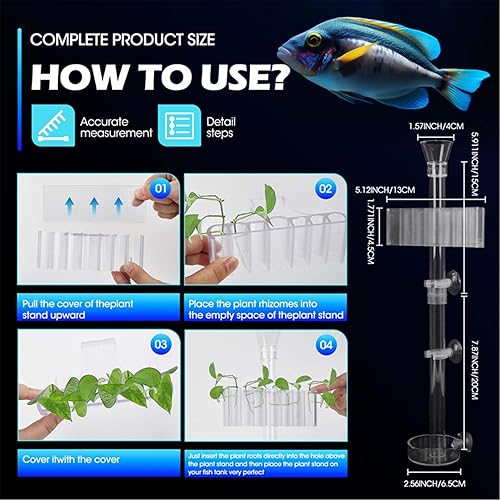 【Multi-Functional Adjustable Design】Practical all-in-one plant holder for fish tank aquarium feeding tube Kit set. It can be disassembled and assembled to be used as a Plant Holder for Aquarium。It can also be used as a Aquarium Plant Holder Fish Feeding Tube Kit Used, the hook and suction cup can be fixed in two ways. Switchable, both fish tanks with and without lids can be used. The Removable Adjustable Length Fish Feeder Tube is equipped with an extension rod and can be assembled into 3 different heights, about 16 inches 10 inches and 8 inches.