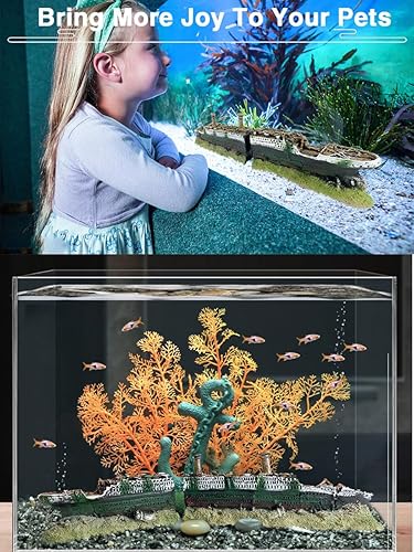 Quality matetrial safe for fish:The ship landscape is made of safe and durable resin,each piece is handmade,the surface is delicate and attention to detail. We have a higher standard to the material, ensuring it is healthy for your pets, giving them a healthy environment,no matter in the salt water or fresh water are sustainable.Strong and durable enough for long-lasting use.This tall and large aquarium decorations decor brings a natural scene to your fish tank,and joy to your pet