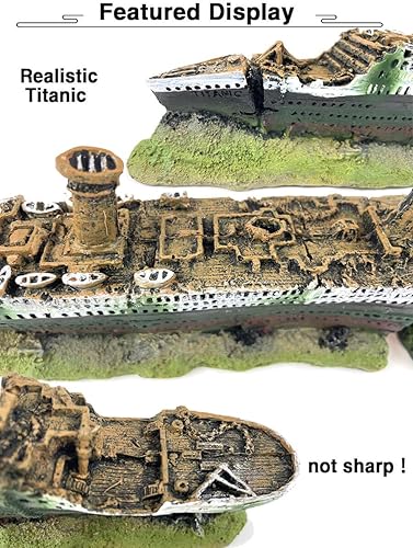 Lifelike artificial titanic shipwreck ornament:Add some whimsical charm and wonder to your fish tank with the titanic shipwrec landscape – a small fish tank decoration.This small aquarium decoration features a titanic shipwreck model,the mini shipwreck gives a realistic feel from times of titanic ship.This fish decor could add a nature to your aquarium,changing it into a beautiful scenery,creating a lifelike undersea world,let your pets enjoy the real nature of the environment