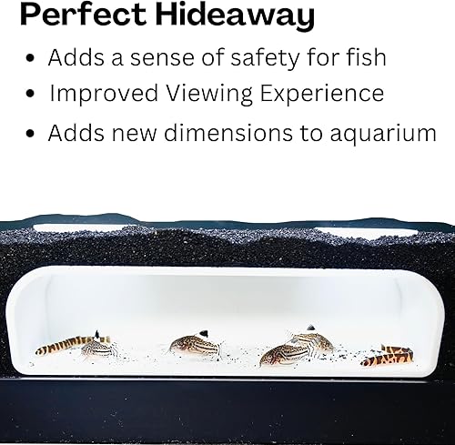 The perfect Aquarium Underground Tunnel Cave for many types of fish such as Pleco, Loaches, Corydora Catfish, Betta Fish, Shrimp and much more! Easy install by moving substrate out of the way placing against the glass and moving the substate back around the cave.