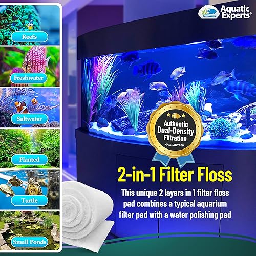 2 LAYERS EQUALS CLEAR WATER: This unique 2 Layers in 1 filter media pad combines a typical aquarium filter pad with a water polishing pad. The top layer’s open fiber construction traps LARGER PARTICLES while the bottom layer's dense fiber network TRAPS FINER PARTICLES, working together to produce clean, clear water in your aquarium.