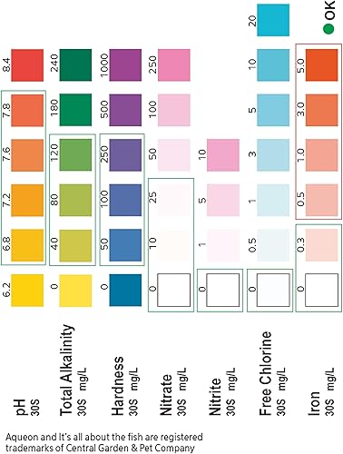 ALL-IN-ONE TESTING to check pH, total alkalinity, hardness, nitrate, nitrite, free chlorine, and iron levels to protect fish.