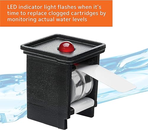 LED indicator light flashes when water cannot pass through the cartridge, generally indicating it's time to change the cartridge