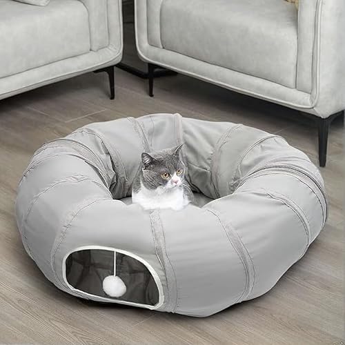 【Many Ways to Use】This cat tunnel can be made circle, S-shaped, half-moon-shaped or any other shape you like, making your cat to experience different fun of play