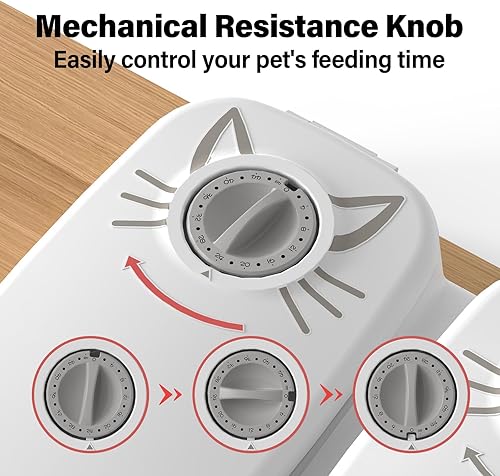High-quality Material:Pet food dispenser is made of safe and high quality ABS shell material, no odor. Irreversible knob design, durable dual springs to prevent pets from opening the lid. Stable rubber base protects the floor and prevents the bowl from sliding without tipping over when your pet is eating