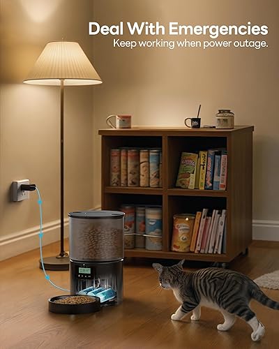 Dual Power - Wired or Battery Power: Choose between a fixed wired connection with the 5V adapter USB power cable or a portable 3D-cell battery-powered feeding station(battery not included), flexible options prevent your pet from going hungry during power outages