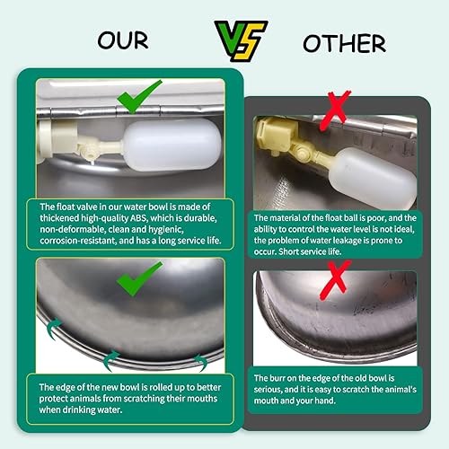 -Automatic animal waterer bowl,which obviously save more than 30% of the water, reduce the sewage , and keep water clean. It suitable for horse, cow sheep, pig,dogs, chicken drinking water.Package include: 1 pcs water bowl only, no water hose.