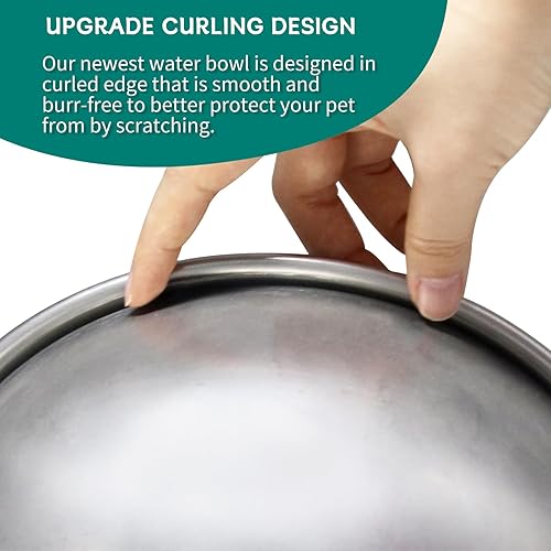 High-quality stainless steel material: this water bowl is made of 304 stainless steel, safe and hygienic, providing a guarantee for the safety of pet drinking water, sturdy and durable, rust-proof, easy to clean.The brass hose splitter is made of 100% solid brass construction, solid and durable. Curled edge :Our newest water bowl is designed in curled edge that is smooth and burr-free to better protect your pet mouth form by scratching.
