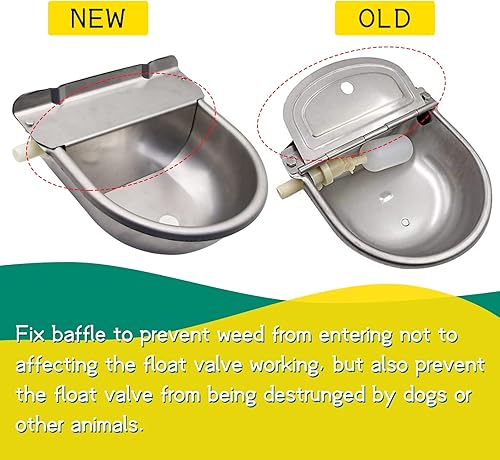 -Fixed Cover: The cover is not hinged to prevent the animals getting to the float and cutoff valve. Note: This water dispenser bowl cover is fixed, if you want to install expansion screws, please use a tool to twist off screws on the cover before installation, (If you mind, please place your order with caution).