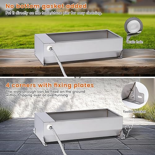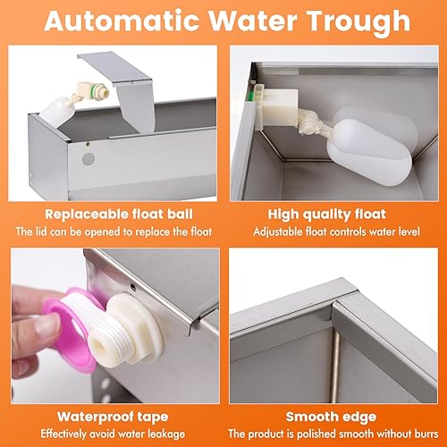 Heavy Stainless Steel Automatic Water Trough: Automatic livestock waterer made of 304 stainless steel, no rust, no deformation, clean and hygienic. Smooth edges to avoid scratches.