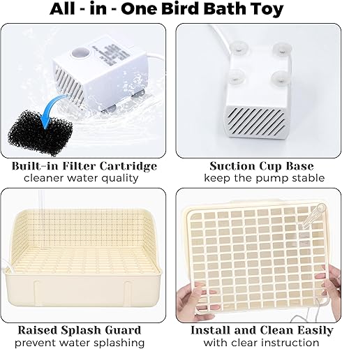 With Instructions & Clean Easily: The shower pet bird bath includes clear instructions (1-minute assembly) and is simple to clean—just wipe and rinse for thorough hygiene.(For any issues, please feel free to contact us, and we will resolve them promptly)