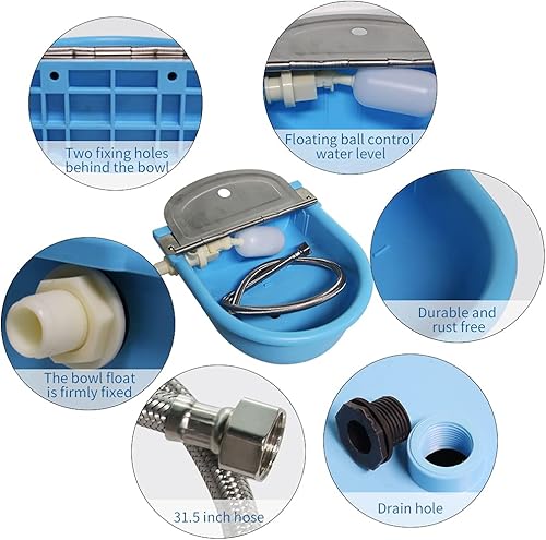 Packge Include: 1 Plastic Automatic Water Bowl, 1 float valve , 1/2 Inch Pipe.