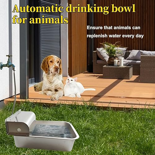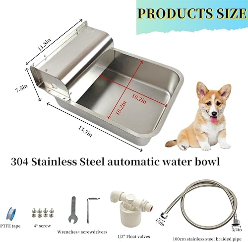 STAINLESS STEEL AND SAFETY: This automatic dog water bowl is made of high-quality food-grade 304 stainless steel material, which is rust-resistant and ensures that your pet always enjoys clean, safe drinking water. Its sturdy and durable design allows it to withstand a variety of outdoor environments. With 1/2-inch float valve is made of durable, high-quality plastic for compactness and durability.