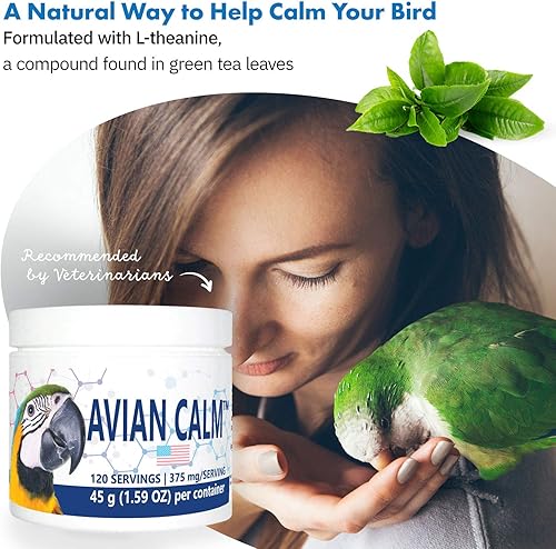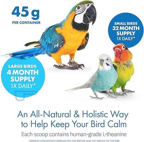 ALL-NATURAL SUPPLEMENT: This daily dietary supplement is for birds of all ages and breeds; Contains L-theanine, a compound found in green tea leaves; A natural method to calm birds of all kinds and ages