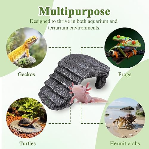 Versatile Use: Designed to thrive in both aquarium and terrarium environments, this hideout is suitable for a wide range of pets. It works in freshwater tanks for axolotls, bettas, or small fish, as well as in dry or moist terrariums for reptiles like crested geckos, newts, turtles, hermit crabs or frogs