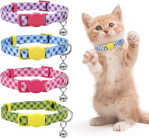 Colorful Fun and Plaid Print Designs: 4 colors checkered pattern , cute and fresh, a collar for all your young kitten's moods.