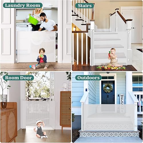 Versatile Baby Gate - This retractable dog gate indoor can be used in doorways, hallways, stairways, deck, porch and patio to create a safe play area for your little baby