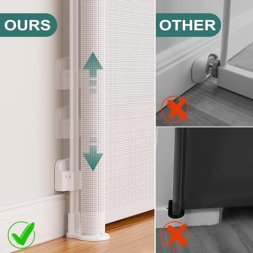 Avoid Baseboard Installation: The lower bracket of child gates for doorways can be moved up and down to fit different baseboard and easy to use. Adjust the lower bracket height for a precise fit, ensuring protection without damaging the substrate, allowing for an effortless installation