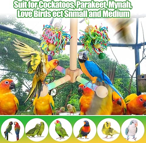 BABORUI Bird Toys, Parrot Foraging Shredder Hanging Toys with Perches for Cage