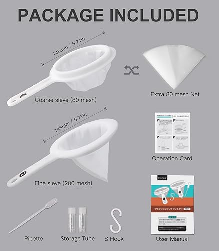 【Perfect match】80 mesh round net + 200 mesh cone net. 80 mesh net filters out shrimp shells, 200 mesh net is used to collect shrimp after hatching. Cone design is more conducive to collection.